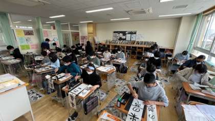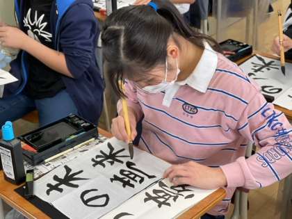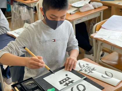 小学校最後の毛筆の学習に6年生が取り組んでいます。