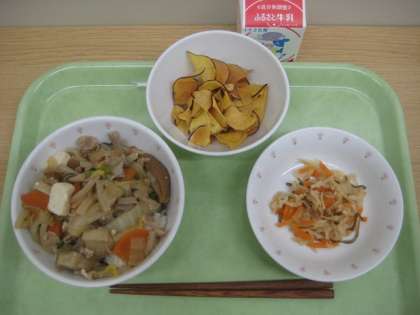 すき焼き風丼 はりはり漬け さつまいもチップ 牛乳