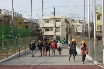 暖かい春の日差しを受けて、子どもたちは元気に登校してきます。