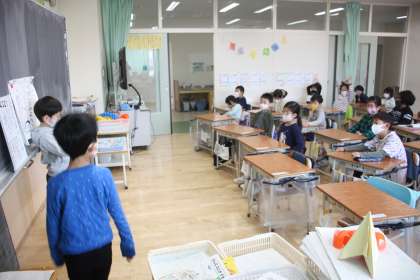 非常にしっかりとした朝の会で、日直のスピーチもあります。