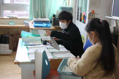 できた子から先生のチェックを受けるので、先生も大忙し!
