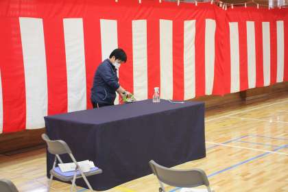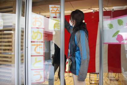 放課後の校内では、先生たちが総動員で卒業式の会場設営をしています。