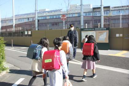 今朝も世田谷警察署からお巡りさんが見守りに来てくれています。