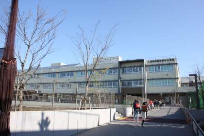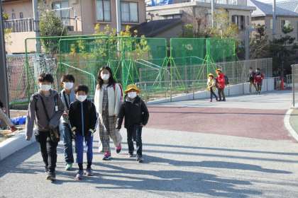 春の朝日を受けた若小の子達が、元気に登校してきます。