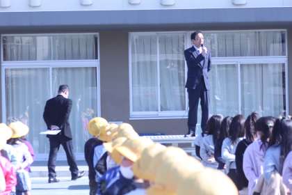 500名近くがそろっても、とても静かな校庭に、校長先生の声が響きます。