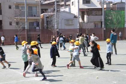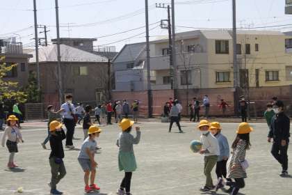 黄色い帽子の1年生たちは、次に遊ぶ時には黄色い帽子はありません。