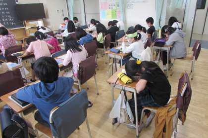 4月30日の離任式に向けて、4年生がお世話になった先生や職員に手紙を書いていました。感謝の思いが伝わるよう、一文字一文字丁寧に書きます。きっと、喜んでくれるよ!