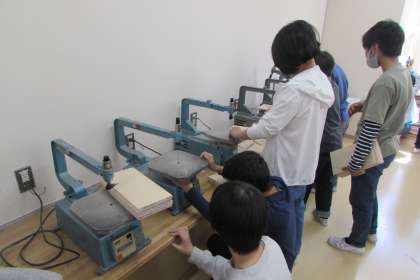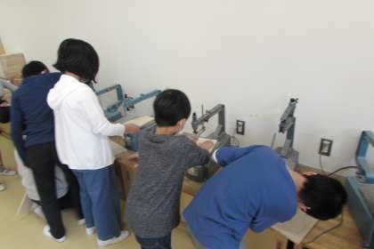 6年生は、電動糸のこぎりをつかって、いず作りに挑戦しています。これまでも、つかってきたのでずいぶん手馴れた感じです。けがに気を付けながら、納得の一品を作ってくださいね。