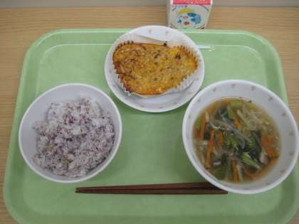 ゆかりごはん 切干大根の卵焼き 沢煮椀 牛乳