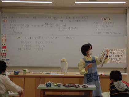 お茶の入れ方について学習を行いました。また、お家で飲むお茶の種類について知り、種類によって作る行程が違うことも学ぶことができました。