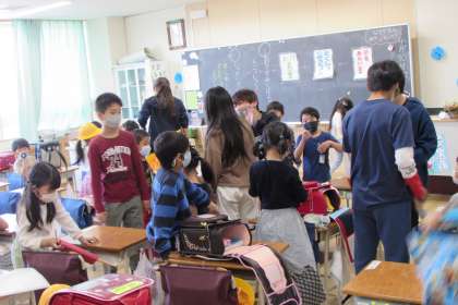 来週は全校朝会がありません。そこで、6年生と校長室がリモートでつながり、オンライン朝の会を開きました。1年生のお世話を頑張る6年生をねぎらいつつ、今の姿が1年生にとってはロールモデルになること、そして働くことは「端楽」につながることを伝えました。