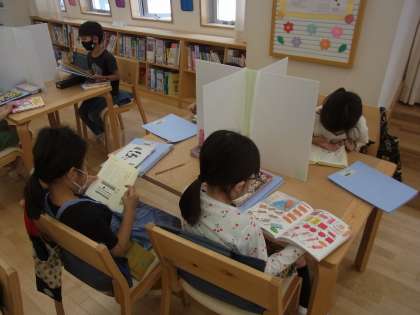 子どもたちが楽しみにしている図書の時間になりました。普段、じっくりと本を読む時間がないので、まとまって読む時間があるのは、嬉しいようでした。また来週も楽しみです。