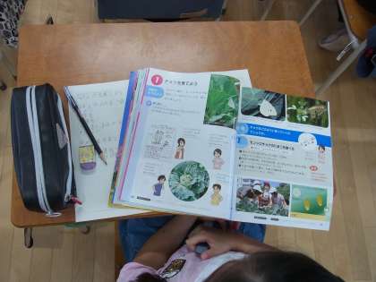 今、3年生では、モンシロチョウやアゲハチョウの幼虫をお世話しています。だんだんと大きくなっていく様子に興味津々です。