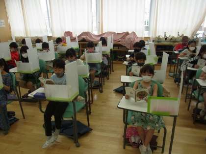 音楽の時間は、「歌はともだち」のリクエストからはじまります。子どもたちがすごく楽しみにしている活動で、今日は「この星に生まれて」を歌っていました。