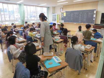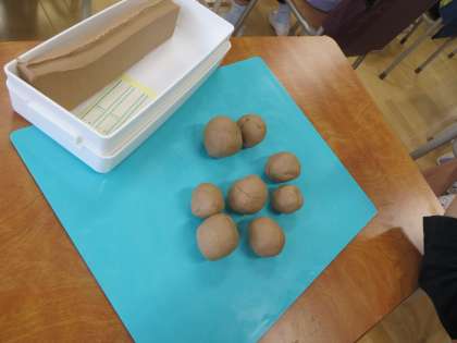 ねんどをまるくしたり細長くしたりしながらおだんご大会をしました。作った形がなにに似ているかを話し合いながら楽しく活動しました。給食の時間の前だったからか、「おいしそう。」なんて意見も・・・!