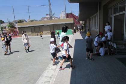 今日は久しぶりの好天で体育日和。1年生が楽しそうに体育をしています。少し、かなり暑くなってきました。水分はこまめにとっていきましょう。