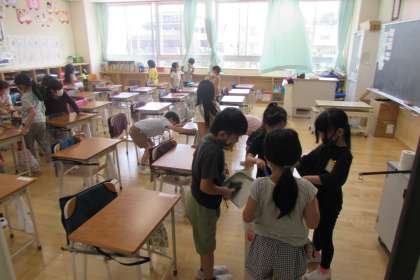 今週から5校時が始まった1年生。給食の後は掃除です。これまでは6年生がきれいにしてくれていましたが、これからは自分たちでがんばってね。掃除の仕方をしっかりと覚えていきましょう。