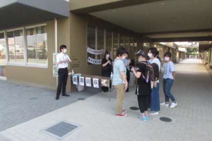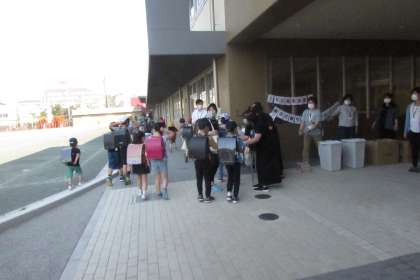 今日から始まった資源回収キャンペーン。朝早くからPTA役員さんや、ボランティアさんが集合し、準備を進めてくださっていました。いざ開門すると、多くの児童や保護者の方が袋や段ボールをさげてきてくれました。用意していた缶バッチがたりなくなってしまったそうです。明日も行いますので、引き続きのご協力をお願いいたします。