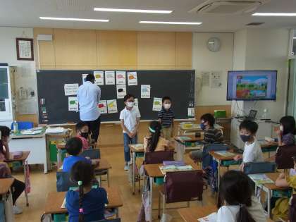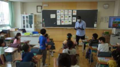今日は自分の好きな色を話す活動をしました。ゲームでは、友達とどちらがはやくタッチできるかを楽しんでいました。タッチのスピードがはやい!