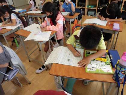 2年生の国語では、スイミーを学習しています。各場面を読み取っていくうちに、物語の楽しさだけではなく、表現の美しさも学んでいます。