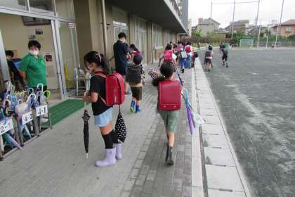 7月に入ったものの梅雨真っ盛り。今日の午前中はよく降りました。今日は全校一斉に5時間授業。幸い、雨がやんでいます。今のうちに、気を付けて帰りましょうね。