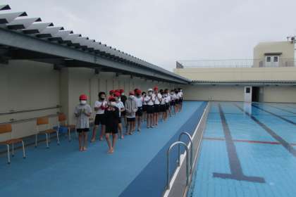 天候不順のため、プールに入れなかった6年生。今日はプール開きのみの実施となりました。明日の1、2時間目に希望をつなぎます。水着とプールカードを持ってきてね!
