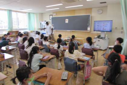 今日で1学期の外国語活動もおしまいです。3年生が講師の先生の楽しいそうに会話を楽しんでいました。1週間に1度のペースで続けてきたせいか、ずいぶん慣れてきましたね。