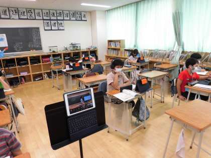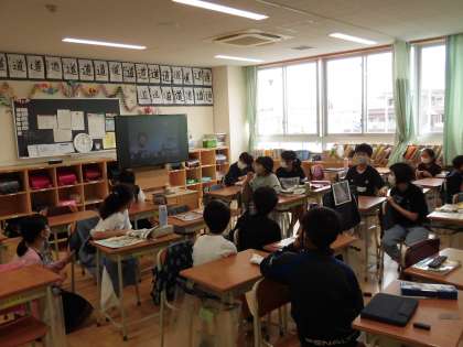 オンライン授業にもなれ、画面の向こうで学習する子ども達も考えや意見を述べ、活動に活気が見られるようになりました。学校に来ている児童も友達の発表を聞き、考える様子も見られています。