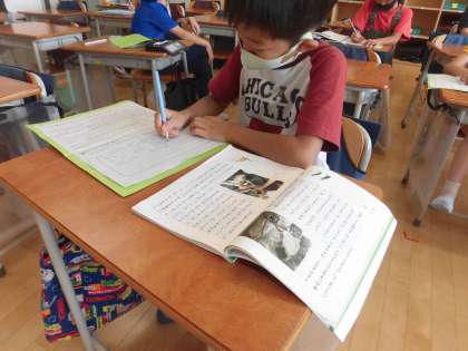 今日も2年生は国語をどんどん進めています。どうぶつ園のじゅういという学習では、単元のめあてを確認したり、感想を書いたりしています。獣医さんの仕事は普段目につきにくいもので、新しい発見がいっぱい!感想はワークシートびっしりです。