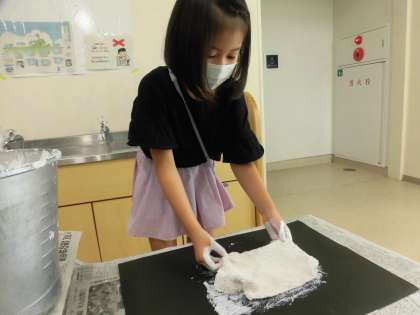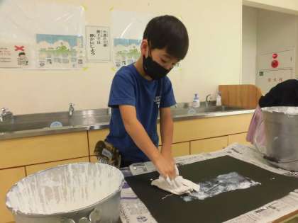 2年生の図工では、「おしゃれなとり」という作品に挑戦!黒の画用紙に、白の絵の具がついた雑巾を豪快に置き、鳥の土台を描きます。色を塗るのが楽しみですね!