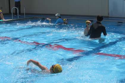 ここしばらく肌寒い毎日。今日は久しぶりに汗ばむような陽気。4年生がプールに入っていました。今日で水泳指導もお終い。夏ともお別れです。来週からは体育発表会の練習が本格的になります。