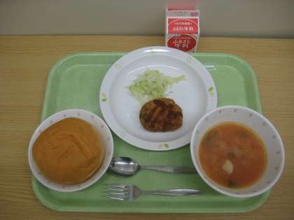 丸パン コロッケ キャベツ ミネストローネ 牛乳