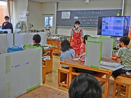 今回は、5年3組の子どもたちに図工の授業を行いました。動画編集アプリ「stop motion studio」を活用して、コマ切れの動画をそれぞれつくりました。作った動画をロイロノートで共有するなど、タブレットの活用を上手にしていました。