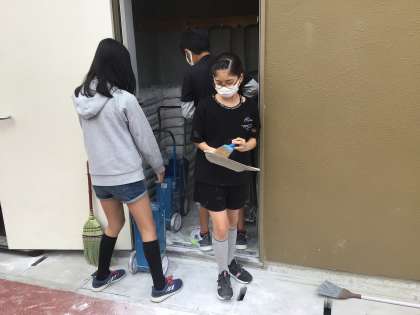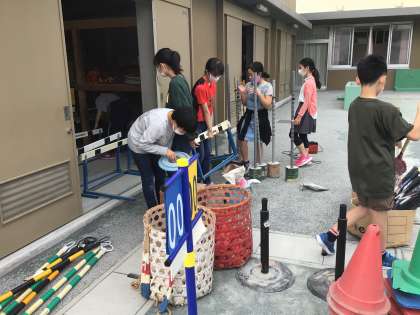 写真は、運動委員会のみんなが体育倉庫の掃除をしてくれているところです。最近は、体育発表会に向けて忙しく、つい片付けが雑になってしまいますが、いつも綺麗に使うことができるのは、こうした高学年の活躍があったからなのですね。