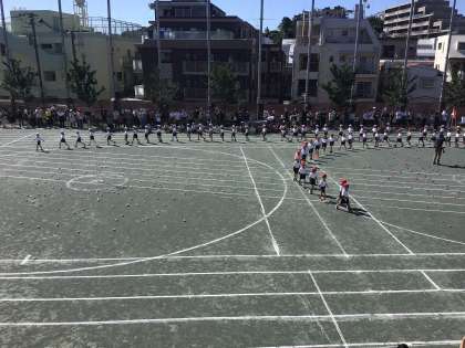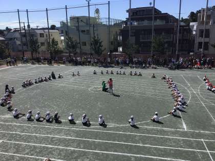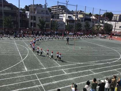かわいいかわいい1年生!一生懸命走ったり踊ったりとても頑張りました。初めての体育発表会でしたが、大活躍でしたね。家でたくさん話を聞いてあげてください。
