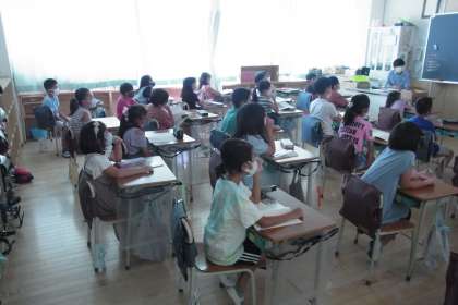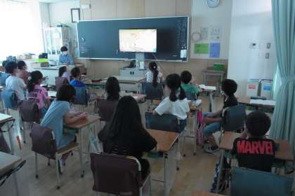 体育発表会も終わり、少し寂しそうな3年生。今日から新しい学習が始まりました。国語「ちいちゃんのかげおくり」です。戦争が大きなテーマになっています。2組では映像を見て、物語の歴史や背景を学んでいました。