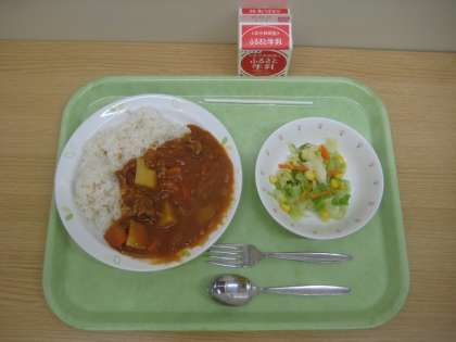 ハッシュドポークライス コーンサラダ 牛乳