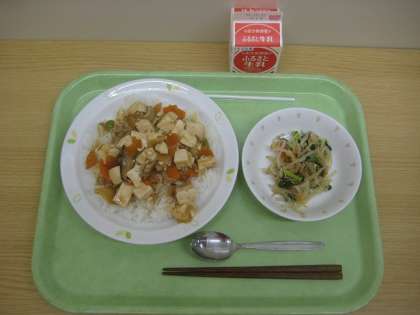 四川豆腐丼 塩ナムル 牛乳