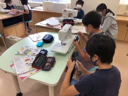 初めてミシンを使用して、縫い物をしました。ミシンを使うことですばやく綺麗に縫えることを知り、これから作るナップサック作りが楽しみなようすでした。