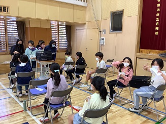 初めは緊張気味だった子供たちでしたが、徐々にALTの先生が作り出す雰囲気に引き込まれていき・・・「Big voice」「Smile」「Challenge」「Don`t be shy!」で楽しく学んでいました。楽しく英語に触れあえた、素敵な時間となりました。