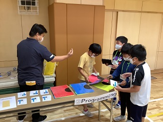 「グローサリー」「プログラミング」「エアプレイン」の3つのブースに分かれて、実践的な英会話を学んだり、英語でプログラミングを組んだりして学びました。