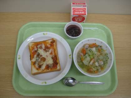 ピザトースト ポトフ ぶどうゼリー 牛乳
