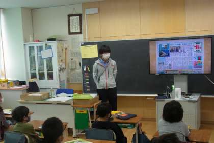 社会科「店ではたらく人」で学習した「スーパーマーケット」について新聞作りをしています。動画で見出しや書き方などを確認しました。動画だと視覚的に理解することができるので、書きやすいですね。