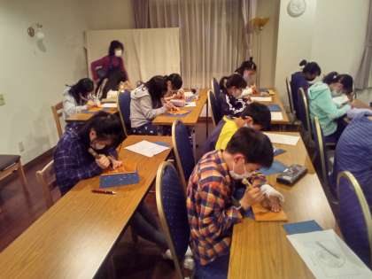 こちらは、日光彫り体験の様子です。活動を分けながら、並行して進めています。子どもたちが時間をまもってくれているので助かっています。