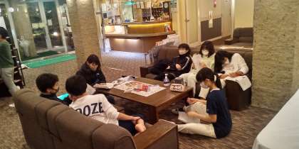 花火は、無事に盛り上がりました。だいぶ時間も押してきました。ロビーでは最後の班長室長会議です。