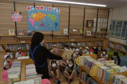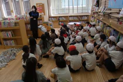 みんなが楽しみにしている図書の時間。久しぶりです。司書の先生の読み聞かせを真剣に聞いています。