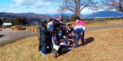 赤城高原パーキングエリアで、2回目の休憩です。ここでクラス写真です。かなり寒いですね。
