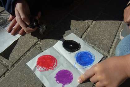 今日は天気もよく、絶好の学習日和でした。光を集めるとどうなるのかと予想を立てて、いざ実験!「暗い色ほど燃える」「光が明るいと焦げる」など、色々な発見がありました。