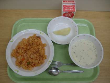 チキンライス じゃがいものポタージュ 洋なし 牛乳