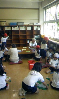 2学期最初のふれあいウエンズデーが行われました。久しぶりに行われたウエンズデイですが、40人近い子供たちが、集まりました。おじいちゃんおばあちゃんたちから、おりがみ・将棋・こまなどを教えてもらいました。みんな楽しそうです。